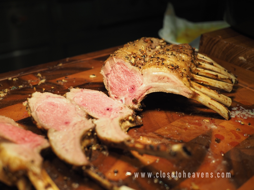 ซี่โครงแกะย่าง หากใครต้องการให้สุกเพิ่ม เชฟก็จะนำไปย่างให้อีกตามต้องการ เนื้อวัวก็เช่นกัน