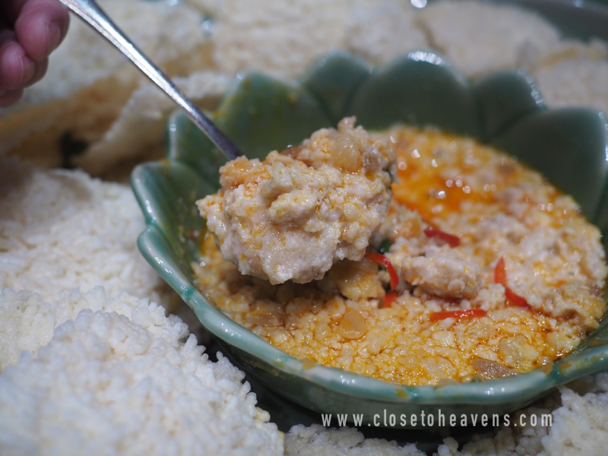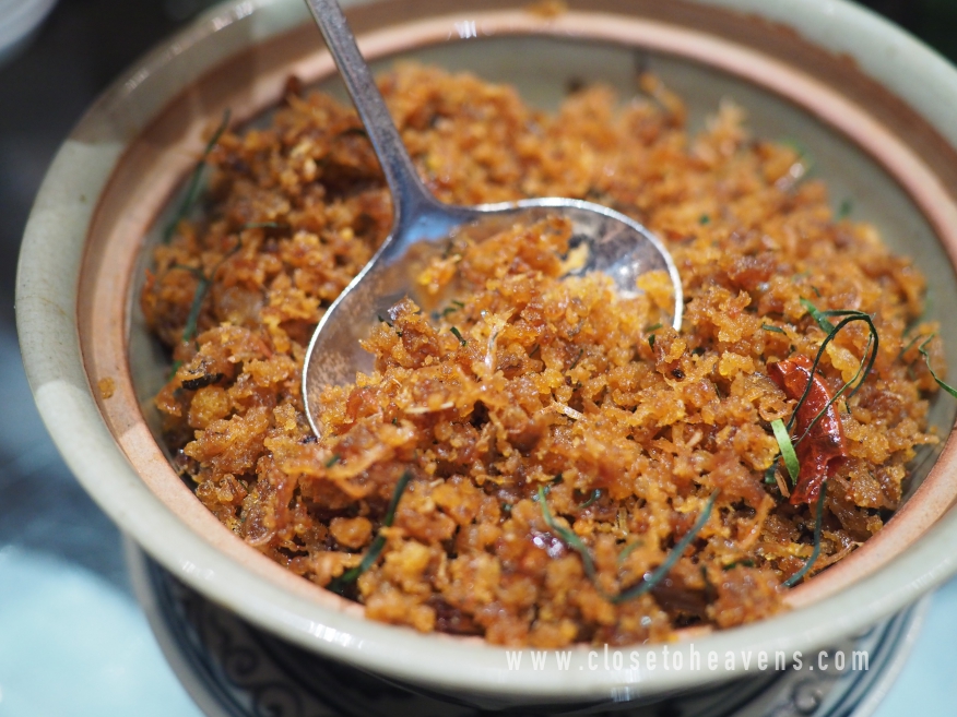 ข้าวตังหน้าตั้ง ตัวข้าวตังแอบนิ่มเล็กน้อยอาจจะเพราะวางตากลม ส่วนหน้าหมูอร่อยเข้มข้น