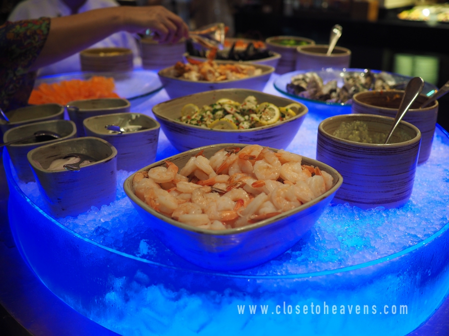 Seafood on Ice มีหอยนางรมสด ขาปูอลาสก้า กุ้ง หอยแมลงภู่ หอยเชลล์ และ แซลมอนรมควัน