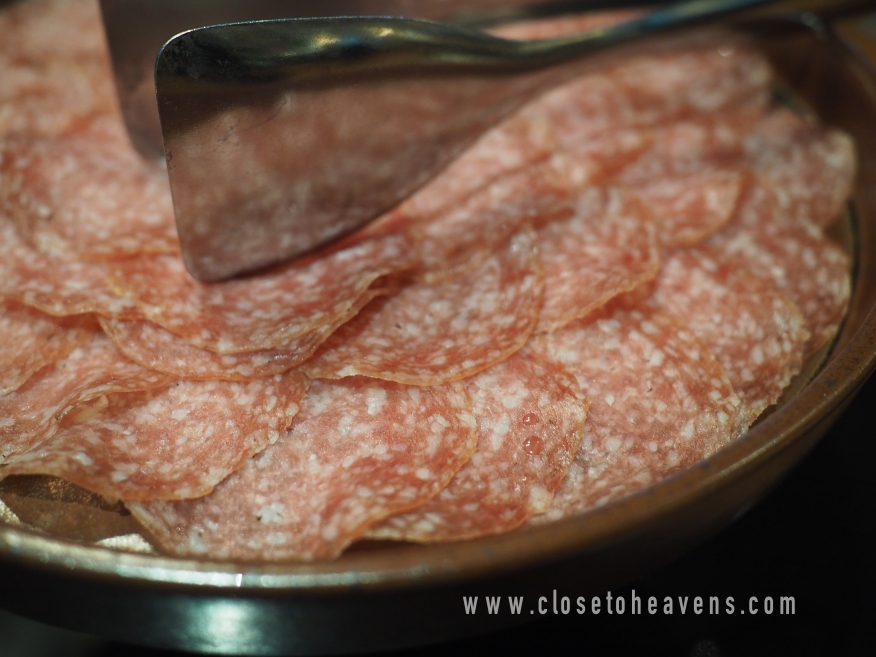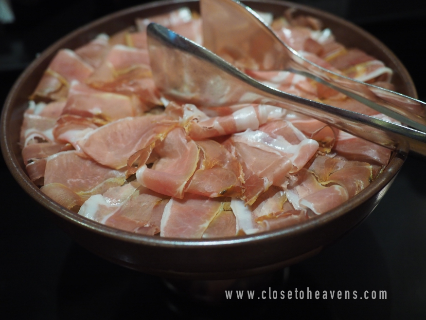 ด่านแรกที่เจอคือ Parma Ham และ Italian cold cuts ต่าง ๆ พร้อมแคนตาลูปให้กินคู่กัน รวมถึงขนมปังโฮมเมด