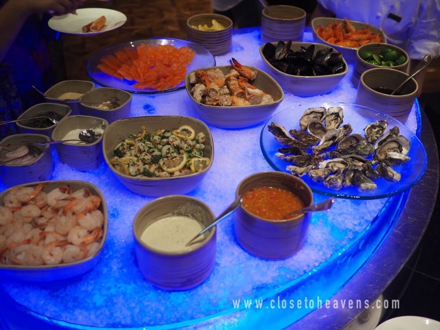 Seafood on Ice มีหอยนางรมสด ขาปูอลาสก้า กุ้ง หอยแมลงภู่ หอยเชลล์ และ แซลมอนรมควัน