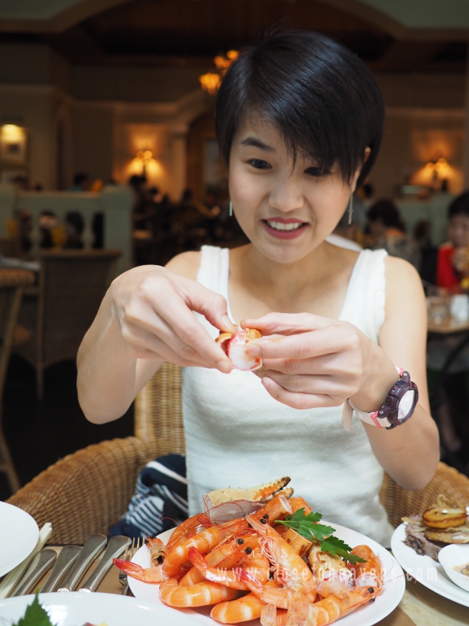 ซีฟู้ดเย็นบุ๊งตักมาแต่ หอยนางรมสด กุ้งและขาปูอลาสก้า ซึ่งเนื้อกุ้งสดแน่นทุกตัว และขาปูไม่เค็ม